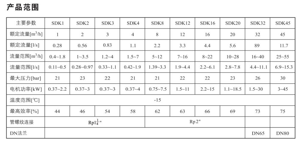 SDK2/SDKT2為配用標(biāo)準(zhǔn)電機(jī)的非自吸立式多級離心泵,電機(jī)軸和泵軸用聯(lián)軸器直接聯(lián)接的結(jié)構(gòu)。為滿足水槽或容器的安裝深度,可安裝空套的腔體來改變泵本身的侵入深度。